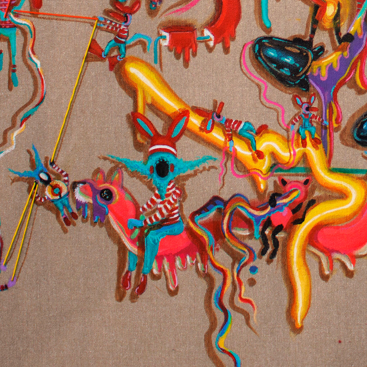 During this period, Rita immerses herself in a new visual language, breaking with conventions and revealing a freer, faster and more intuitive expression. This metamorphosis clearly distances herself from the digital and surrealist pop style and has as a link to the past bright colours, critical reflections and the same dose of irony.
