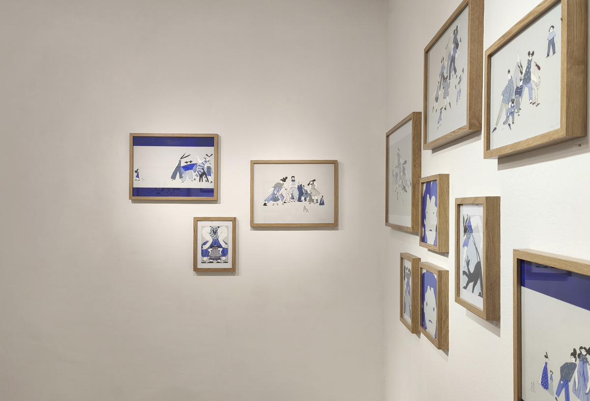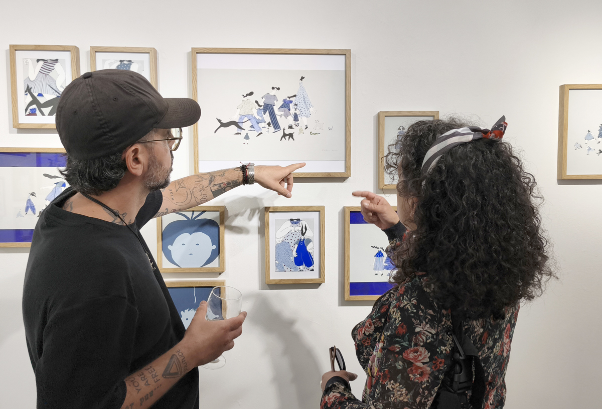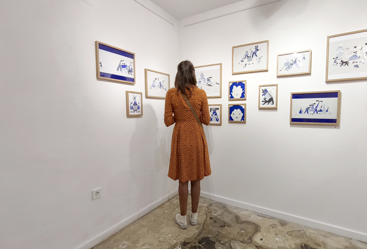 Constança works in different scales and techniques but has a soft spot for blues and grays and for dolls with big ears. Above all, she doesn’t know how to live without making up stories and she doesn’t show much interest in learning either.