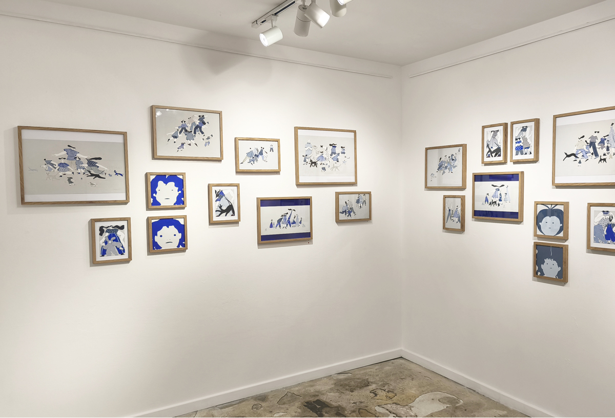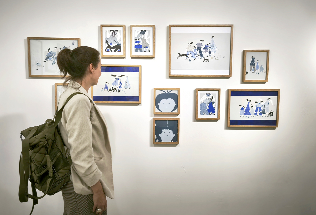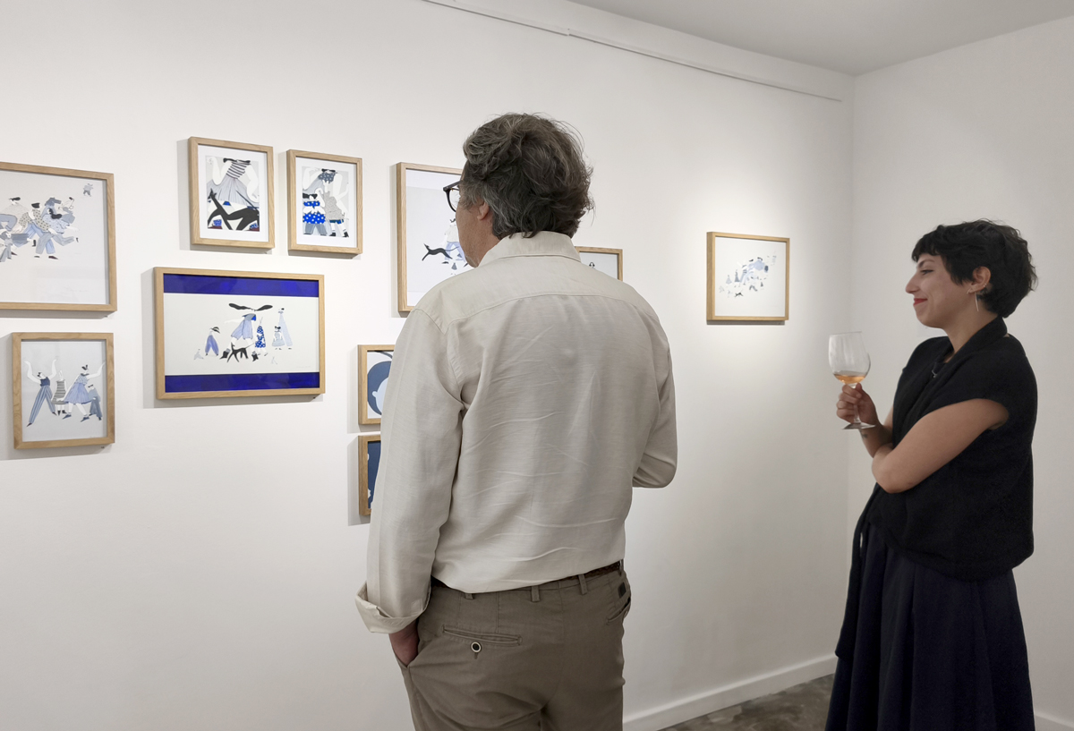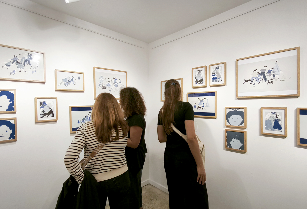 Constança works in different scales and techniques but has a soft spot for blues and grays and for dolls with big ears. Above all, she doesn’t know how to live without making up stories and she doesn’t show much interest in learning either.