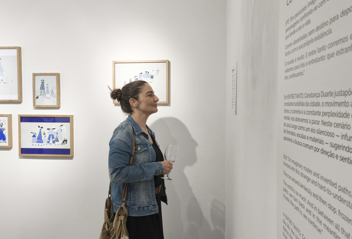 In ENTRE TANTO, Constança Duarte juxtaposes the contradictions of everyday life: the constant whirl of the city, the accelerated movement, the daily dance, the stress, the rush and the constant perplexity that meets us when we finally dare to stop. In this scenario of contrasts, the predominance of blue emerges as a silent link – infusing harmony into the diversity of formats, scales and materials – subtly suggesting what brings us together: the common search for direction and meaning.