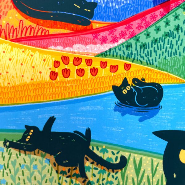 Sara’s work is essentially gouache or digital illustration, although she doesn’t resist experimenting with different media. She tries to explore two-color palettes to the fullest and is currently very focused on blue and yellow. Animals, landscapes, everyday situations and the protection of the planet are her objects of inspiration.