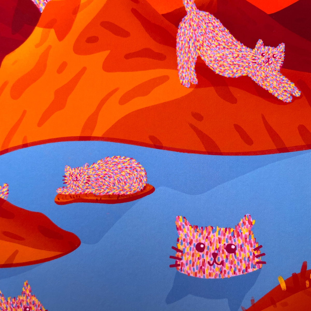 Sara’s work is essentially gouache or digital illustration, although she doesn’t resist experimenting with different media. She tries to explore two-color palettes to the fullest and is currently very focused on blue and yellow. Animals, landscapes, everyday situations and the protection of the planet are her objects of inspiration.