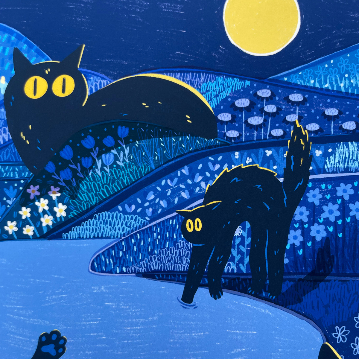 Sara’s work is essentially gouache or digital illustration, although she doesn’t resist experimenting with different media. She tries to explore two-color palettes to the fullest and is currently very focused on blue and yellow. Animals, landscapes, everyday situations and the protection of the planet are her objects of inspiration.