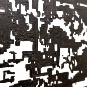 Joana R. Sá’s work develops through drawing as an expanded field, conceptually presenting itself as a rhizome around the methodological exploration of deviation, gesture, memory, code, and language, through dichotomies about the organic and the artificial/mechanical/digital. Through the practice of a visual alphabet – indecipherable code records from her inner essence – the artist digitally deconstructs them through a process of databending, causing their corruption, so that she can execute the translation of digital artifacts, along with reminiscences of her alphabet. Her artistic process develops through encounters and mismatches, constructions and deconstructions, territorializations and deterritorializations, materializations and dematerializations, noise and harmonies, memories and unmemories.