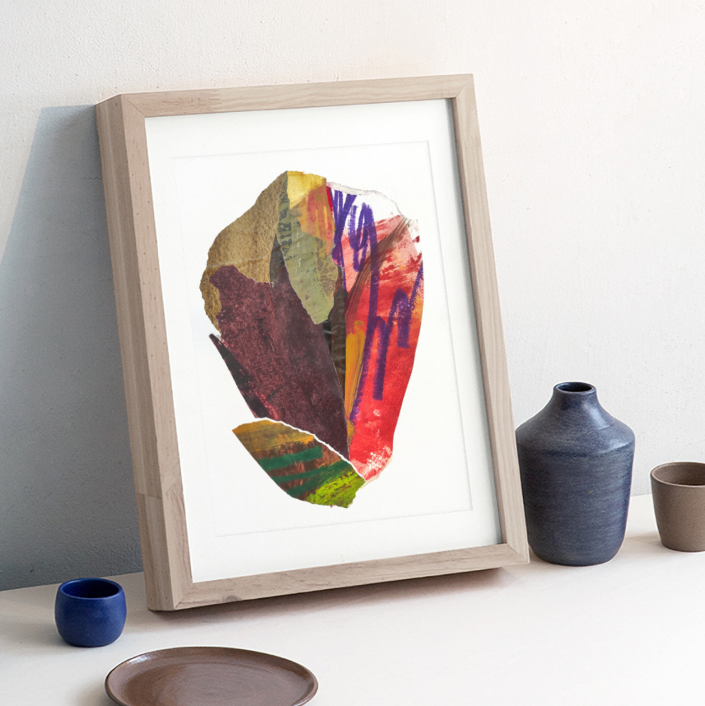 He does a personal investigation on the behavior of color in different media and materials and how it can communicate, not only with different supports, but also with each other. The collages appear in his artistic work to think in a new perspective of the shapes and colors after he has done some works, where the process envolves tearing apart the paper to think in a new shape and posteriorly in a new composition.