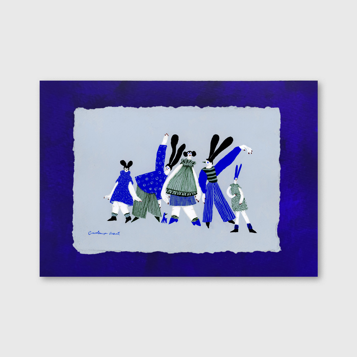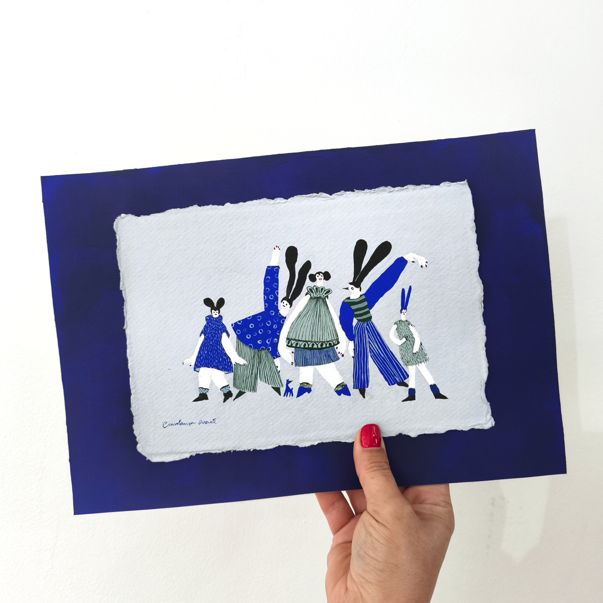Constança works in different scales and techniques but has a soft spot for blues and grays and for dolls with big ears. Above all, she doesn’t know how to live without making up stories and she doesn’t show much interest in learning either.