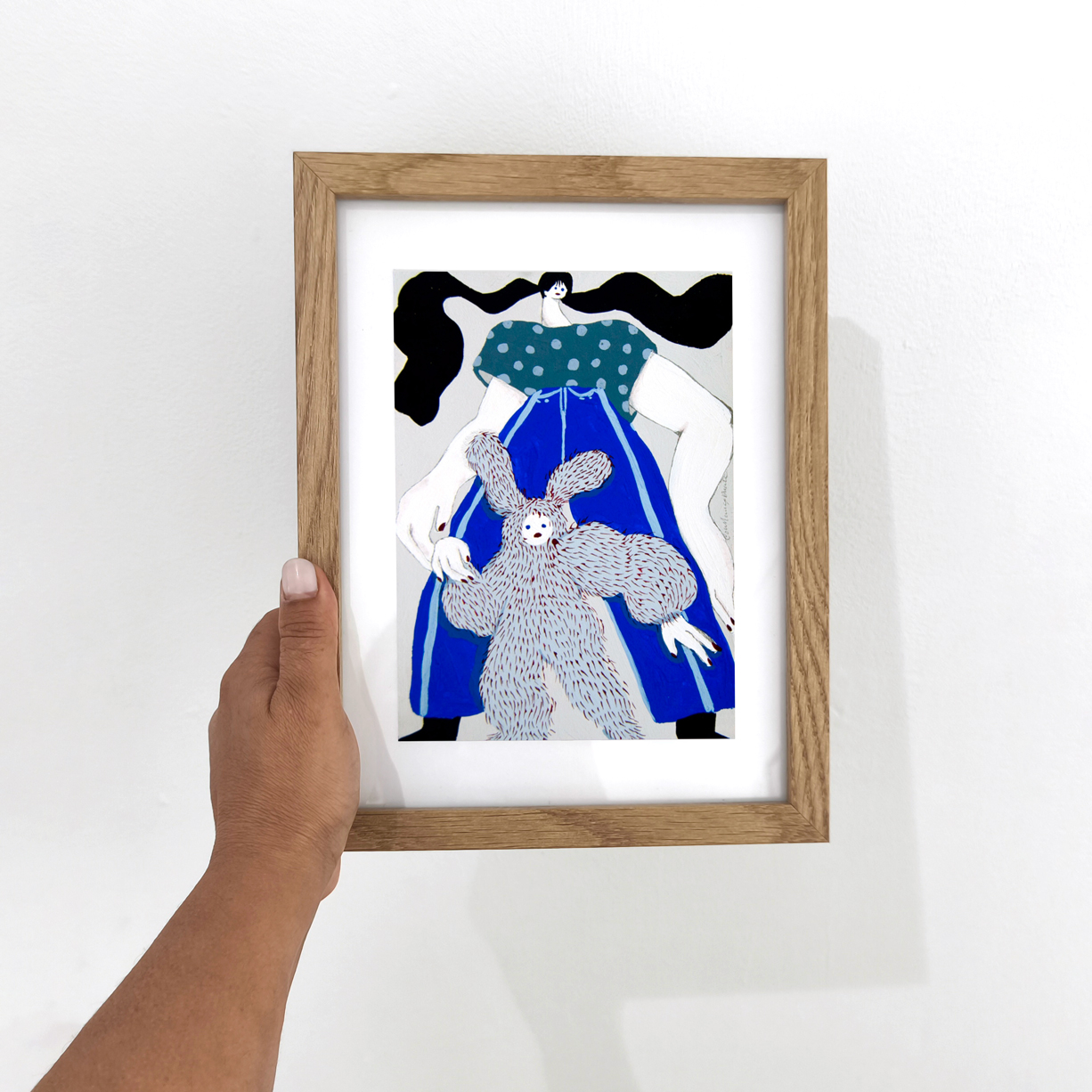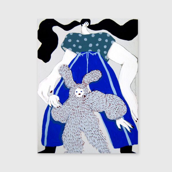 Constança works in different scales and techniques but has a soft spot for blues and grays and for dolls with big ears. Above all, she doesn’t know how to live without making up stories and she doesn’t show much interest in learning either.