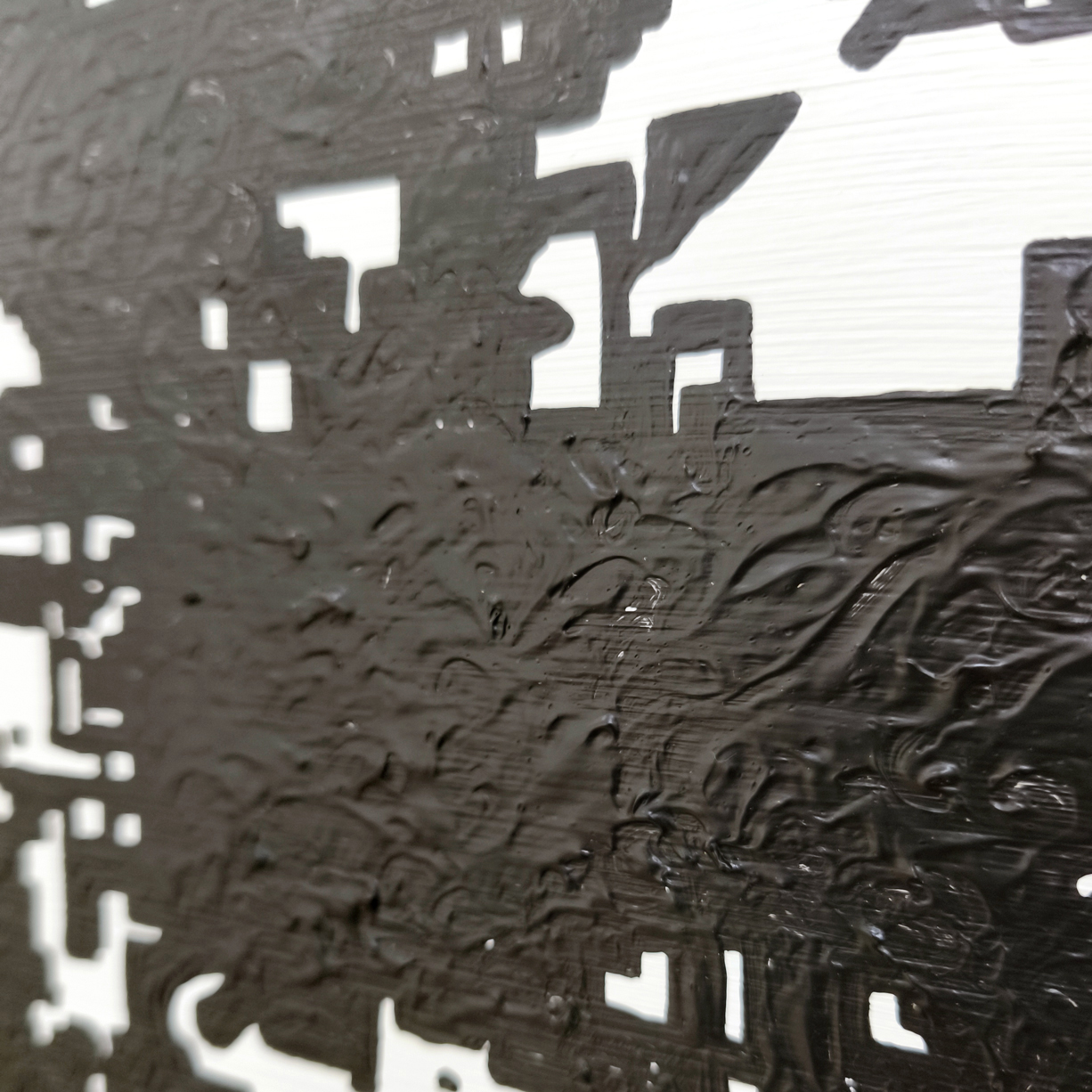 Joana R. Sá’s work develops through drawing as an expanded field, conceptually presenting itself as a rhizome around the methodological exploration of deviation, gesture, memory, code, and language, through dichotomies about the organic and the artificial/mechanical/digital. Through the practice of a visual alphabet – indecipherable code records from her inner essence – the artist digitally deconstructs them through a process of databending, causing their corruption, so that she can execute the translation of digital artifacts, along with reminiscences of her alphabet. Her artistic process develops through encounters and mismatches, constructions and deconstructions, territorializations and deterritorializations, materializations and dematerializations, noise and harmonies, memories and unmemories.