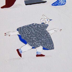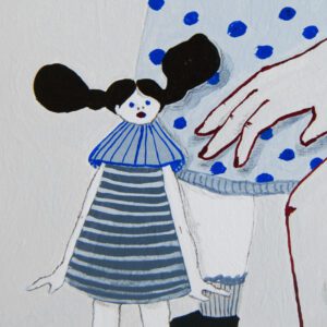 Constança works in different scales and techniques but has a soft spot for blues and grays and for dolls with big ears. Above all, she doesn’t know how to live without making up stories and she doesn’t show much interest in learning either.