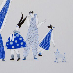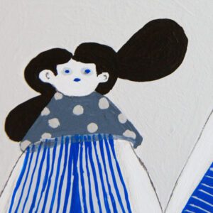Constança works in different scales and techniques but has a soft spot for blues and grays and for dolls with big ears. Above all, she doesn’t know how to live without making up stories and she doesn’t show much interest in learning either.