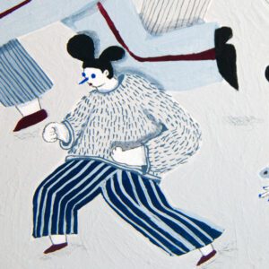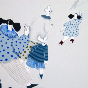 Constança works in different scales and techniques but has a soft spot for blues and grays and for dolls with big ears. Above all, she doesn’t know how to live without making up stories and she doesn’t show much interest in learning either.