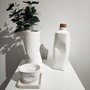 Heir Ceramics are designed and slip casted by Haley Bernier in Lisbon, Portugal. The studio explores issues of consumption, disposability, and value. The pieces challenge perceptions and expectations of industrially produced objects by preserving imperfections and evidence of previous human interaction. The ceramic works encourage retention and a reflection to their materiality, past life, and process of their creation.