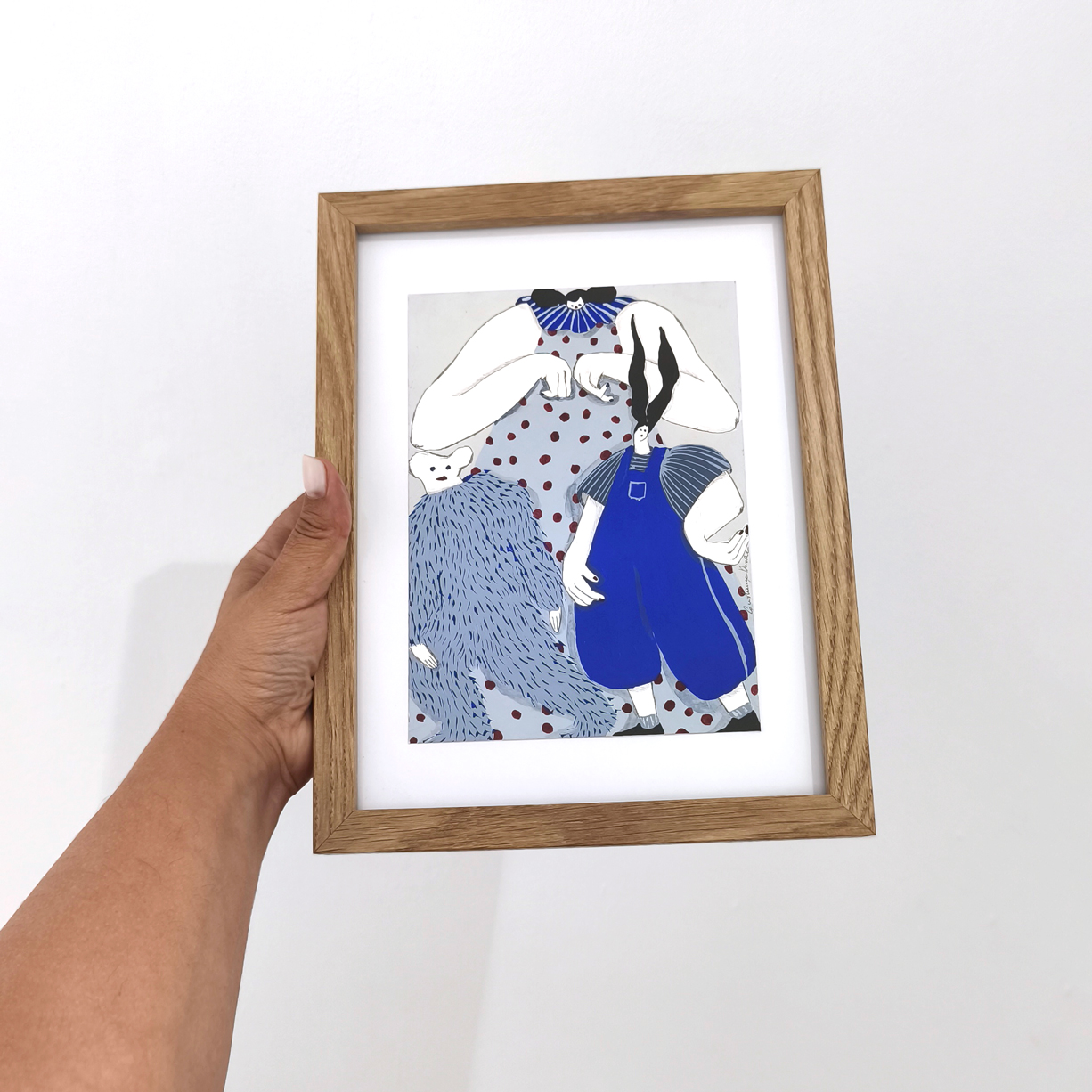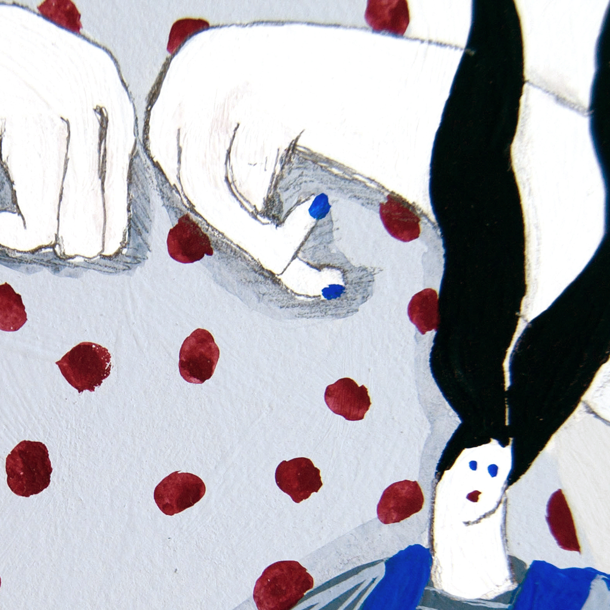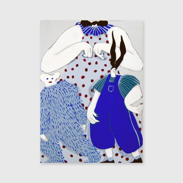 Constança works in different scales and techniques but has a soft spot for blues and grays and for dolls with big ears. Above all, she doesn’t know how to live without making up stories and she doesn’t show much interest in learning either.