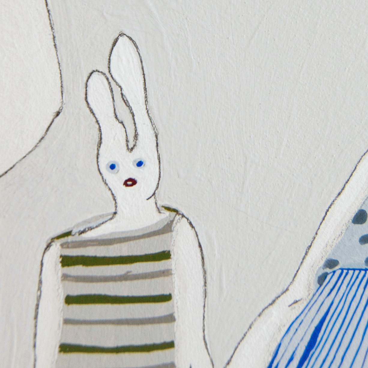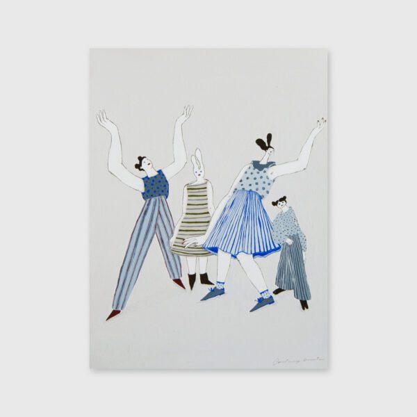 Constança works in different scales and techniques but has a soft spot for blues and grays and for dolls with big ears. Above all, she doesn’t know how to live without making up stories and she doesn’t show much interest in learning either.