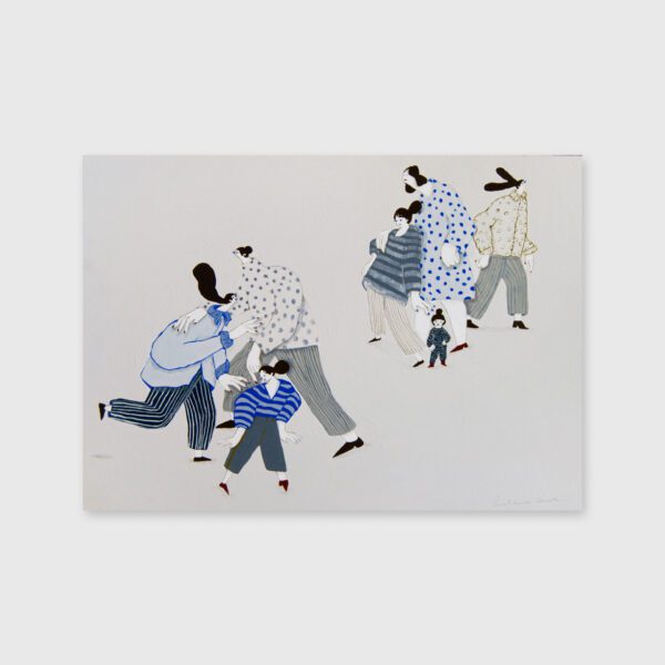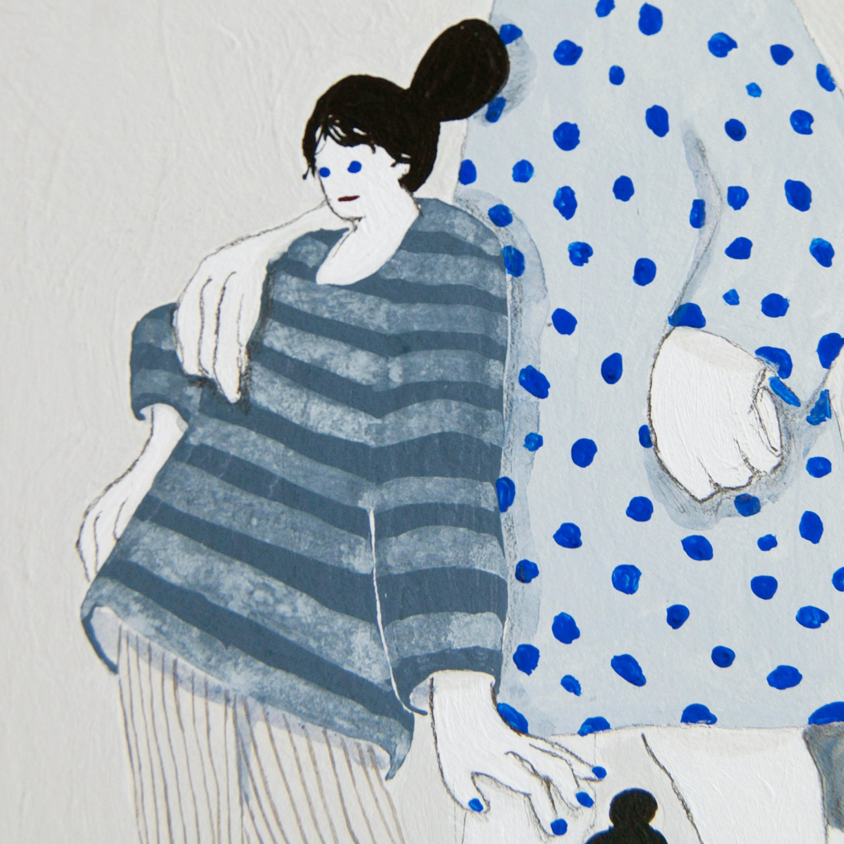 Constança works in different scales and techniques but has a soft spot for blues and grays and for dolls with big ears. Above all, she doesn’t know how to live without making up stories and she doesn’t show much interest in learning either.