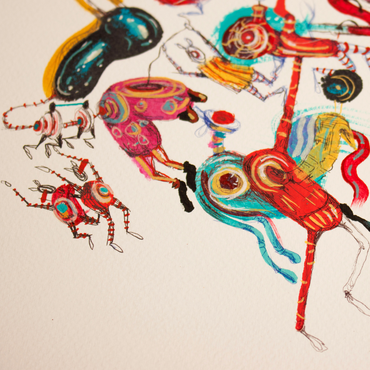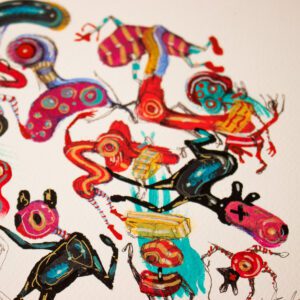 Rita Ravasco was born in Mourão, in 1989, and graduated from the Polytechnic Institute of Tomar, in Plastic Arts – Advanced Painting. The visual artist is dedicated to illustration, painting, video, stopmotion, drawing, mural painting and sculpture.