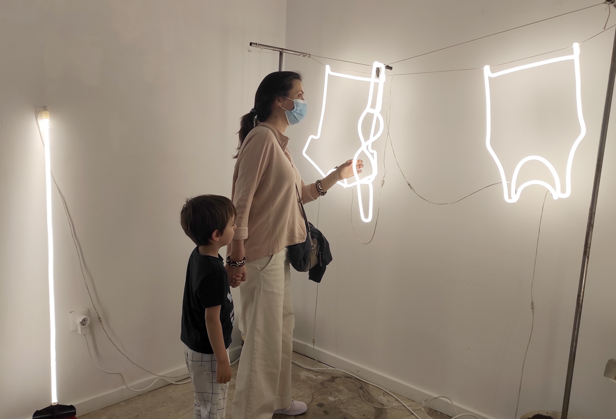 The public installation Patrõa (female boss), created by the Chilean artist Elianyuri, which lights up the clotheslines on the facades at night, in various areas of Lisbon and surroundings, aims to highlight unpaid domestic work. It calls attention to the gender asymmetries that exist around the world that place the women of the house in a spot of silent subservience. Taking from them one of the most precious and irrecoverable assets: time.