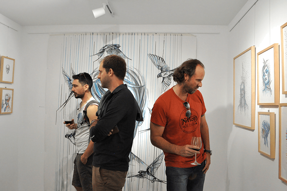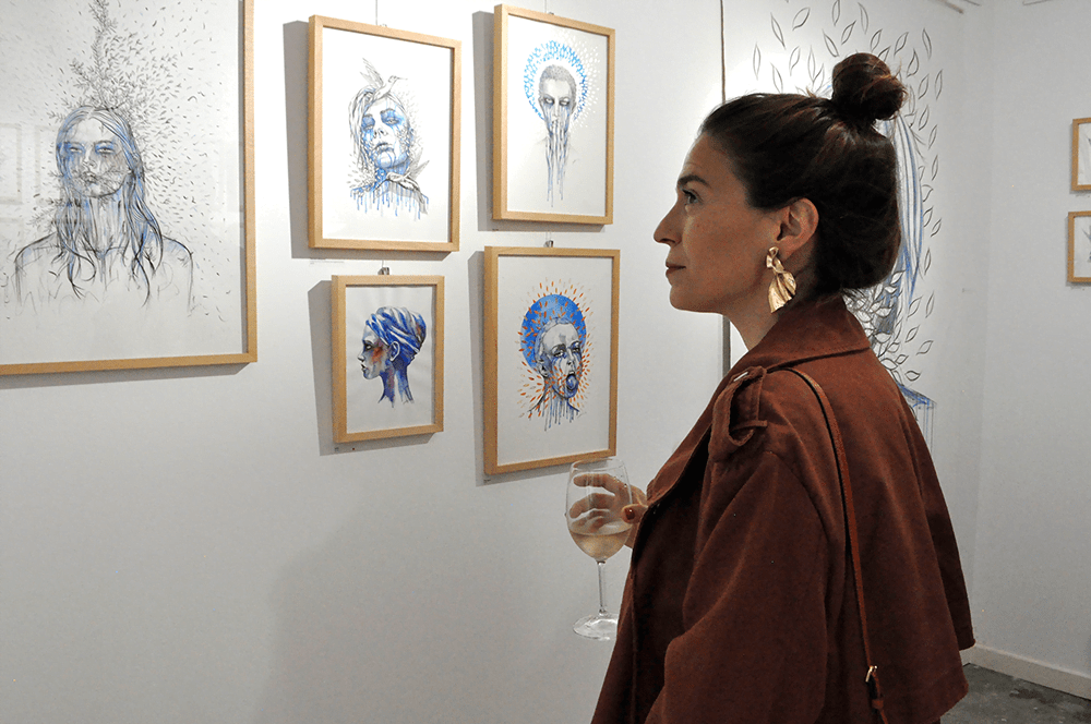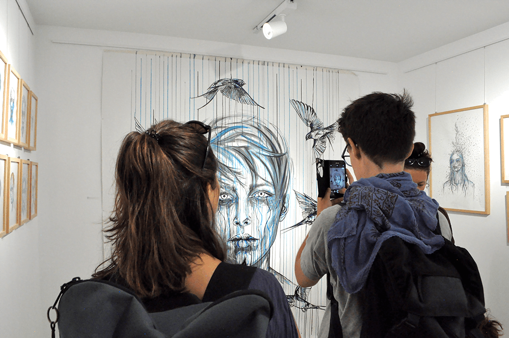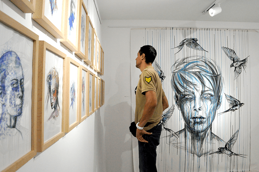 Paintings and drawings created with a confident and strong line are immersed in blue and melancholy. The subjects are portrayed in a crude, free and natural way, which creates impossibility for indifference.