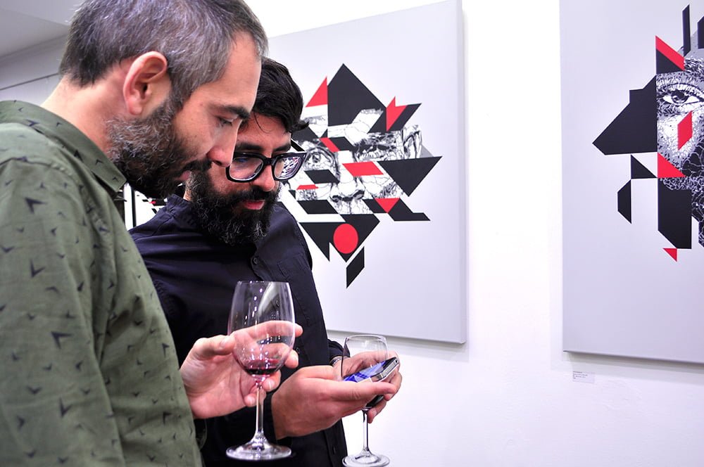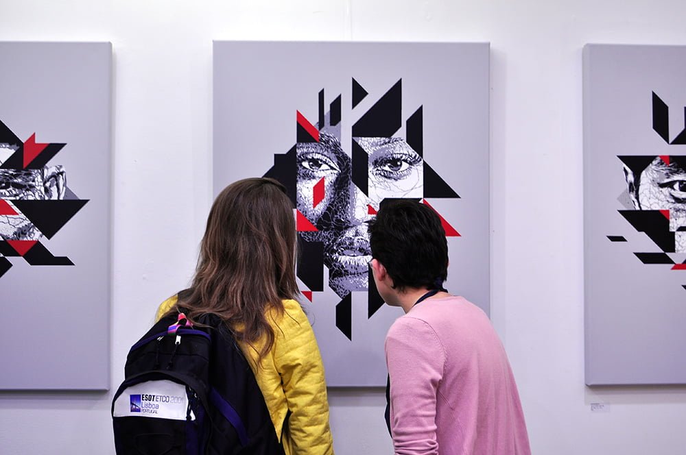 Recently SAMINA has explored other ways of expressing his work. Not losing his essence, where he contraposes the inherent geometrical rules to the organic universe of painting the human portrait, in CRYSTALIZED 0.0 the artist explores a different type of composition. In this new stage, the artist experiments with crystalizing a set moment in time and space, a still picture of deep meaningful human expressions.