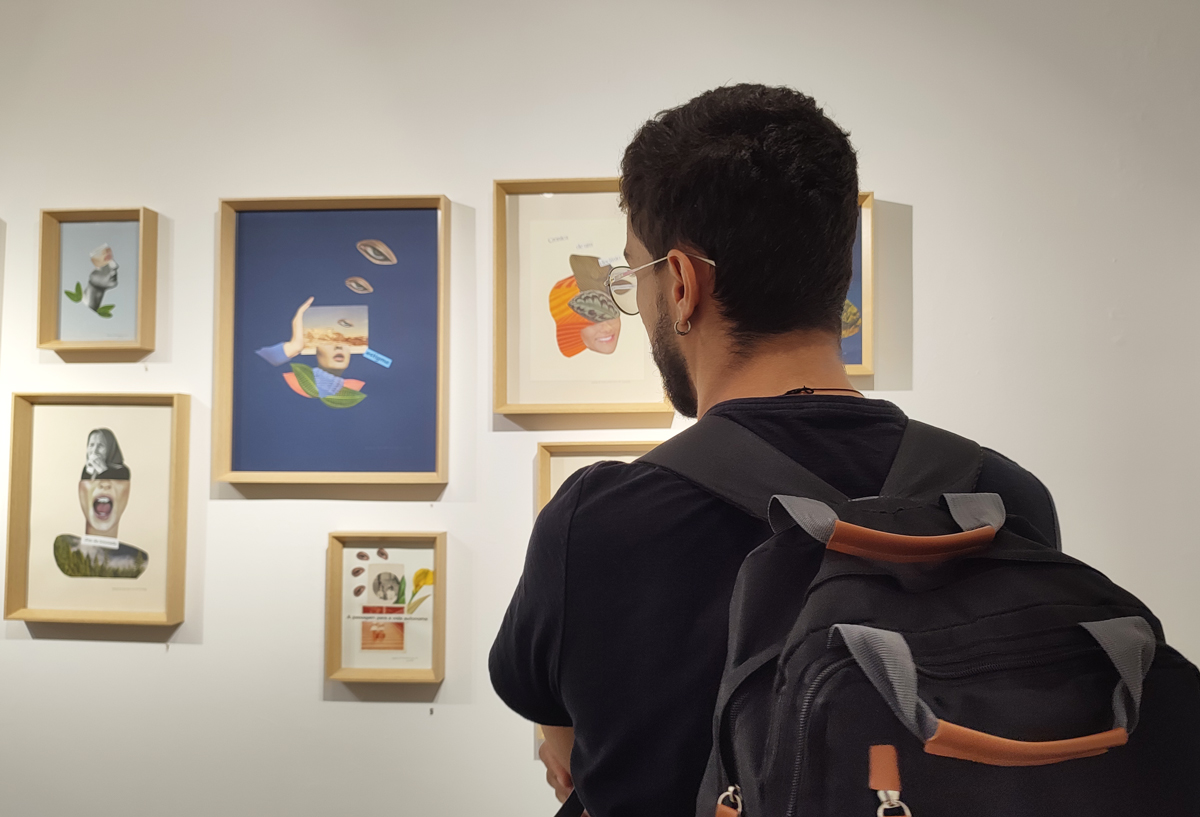 She began her artistic activity with analog collage and drawing techniques, and in the last 10 years adopted digital collage. In this exhibition, the artist goes back in time and returns to manual research, for the best images in magazines and getting her hands on scissors and glue. Her creative process explores themes of self-acceptance, the absurd, surrealism and melancholy, always inspired by the female figure.