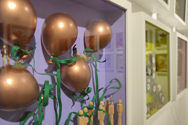Each of these scenarios is like a small act in a play, in which the miniature characters inhabit fantasized places created from banal but unexpected objects that are part of our routine.