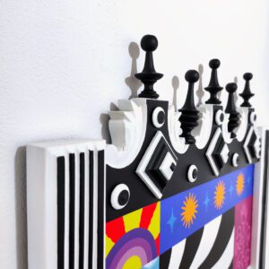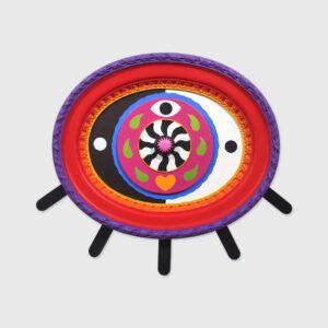 Bunny’s ability to bring life to what was dormant, to give lasting new life to the forgotten, leads her to rescue long-forgotten materials and transform them into authentic works of a hallucinogenic universe immersed in the alchemy of color and symbolism. Every surface serves as a canvas, and every technique and tool is explored to its fullest expression. The colors develop a life of their own and reach a level of saturation that envelops us in a visual fullness and plunges us into a whirlpool of sensations.