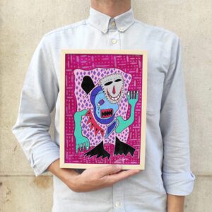 universe of colors and textures, with paper, canvas or street walls serving as the basis for his artistic expression. With influences from Basquiat, Miró, Keith Haring or Picasso, he has been developing a childish, imperfect and carefree style which he called “mtaforism”.