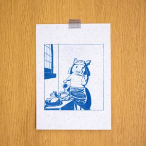 Sara’s work is essentially gouache or digital illustration, although she doesn’t resist experimenting with different media. She tries to explore two-color palettes to the fullest and is currently very focused on blue and yellow. Animals, landscapes, everyday situations and the protection of the planet are her objects of inspiration.